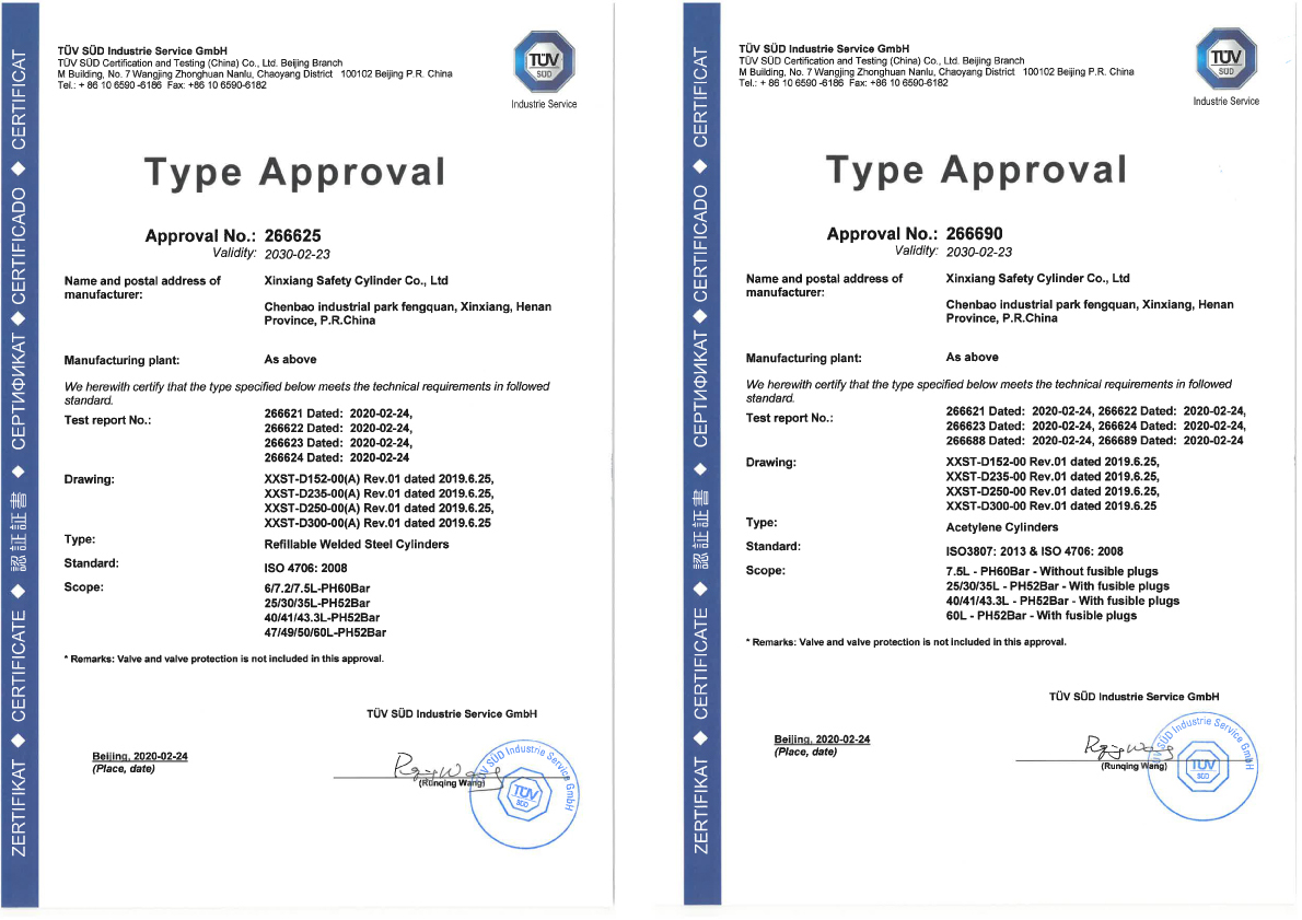 ISO 3807認(rèn)證證書(shū)覆蓋我公司多種規(guī)格溶解乙炔氣瓶(直徑:152/235/250/300,7.5L-60L)。
